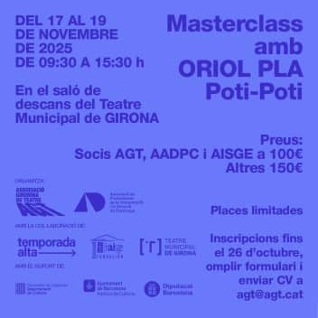 Inscripcions obertes fins el 26 d’octubre: Entreu aquí, empleneu en el formulari, i envieu el vostre CV a agt@agt.cat